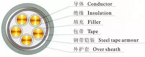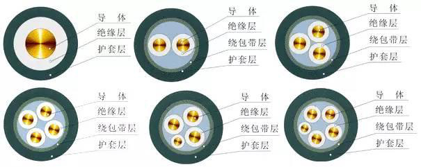 電纜的基本結(jié)構(gòu)就是上圖所顯示的,從里到外順序依次是:導(dǎo)體(銅、鋁)、絕緣層、繞包帶層(繞包帶、填充繩等)、護(hù)套。