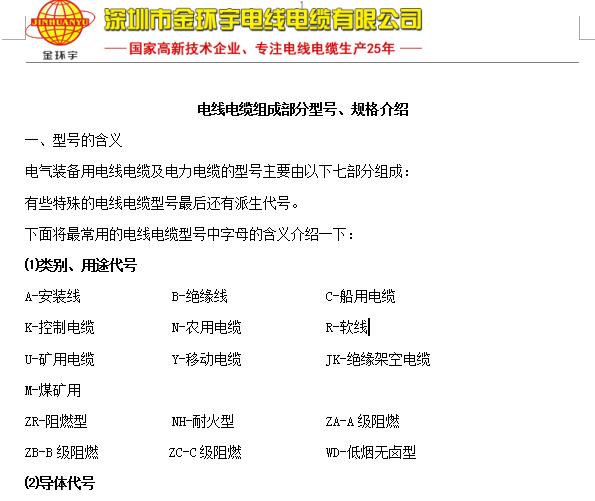 電線電纜型號、規(guī)格介紹及文檔下載