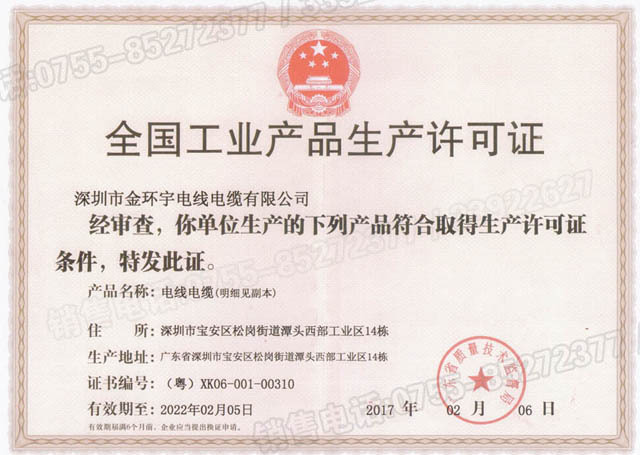 金環(huán)宇電纜堅持質(zhì)量求生存、質(zhì)量求發(fā)展、質(zhì)量求榮譽(yù)的宗旨,建立、健全了研發(fā)、生產(chǎn)、銷售、服務(wù)的標(biāo)準(zhǔn)體系,經(jīng)過不懈努力深圳市金環(huán)宇電線電纜有限公司被評為高新技術(shù)企業(yè)!金環(huán)宇產(chǎn)品也順利通過了ISO9001質(zhì)量管理體系認(rèn)證、國家強(qiáng)制性產(chǎn)品認(rèn)證(3C認(rèn)證),金環(huán)宇電線電纜榮獲廣東省名牌產(chǎn)品,廣東省著名商標(biāo)、中國馳名商標(biāo)等等,生產(chǎn)許可證也是一應(yīng)俱全,包括全國工業(yè)產(chǎn)品生產(chǎn)許可證、廣東省消防產(chǎn)品生產(chǎn)許可證。